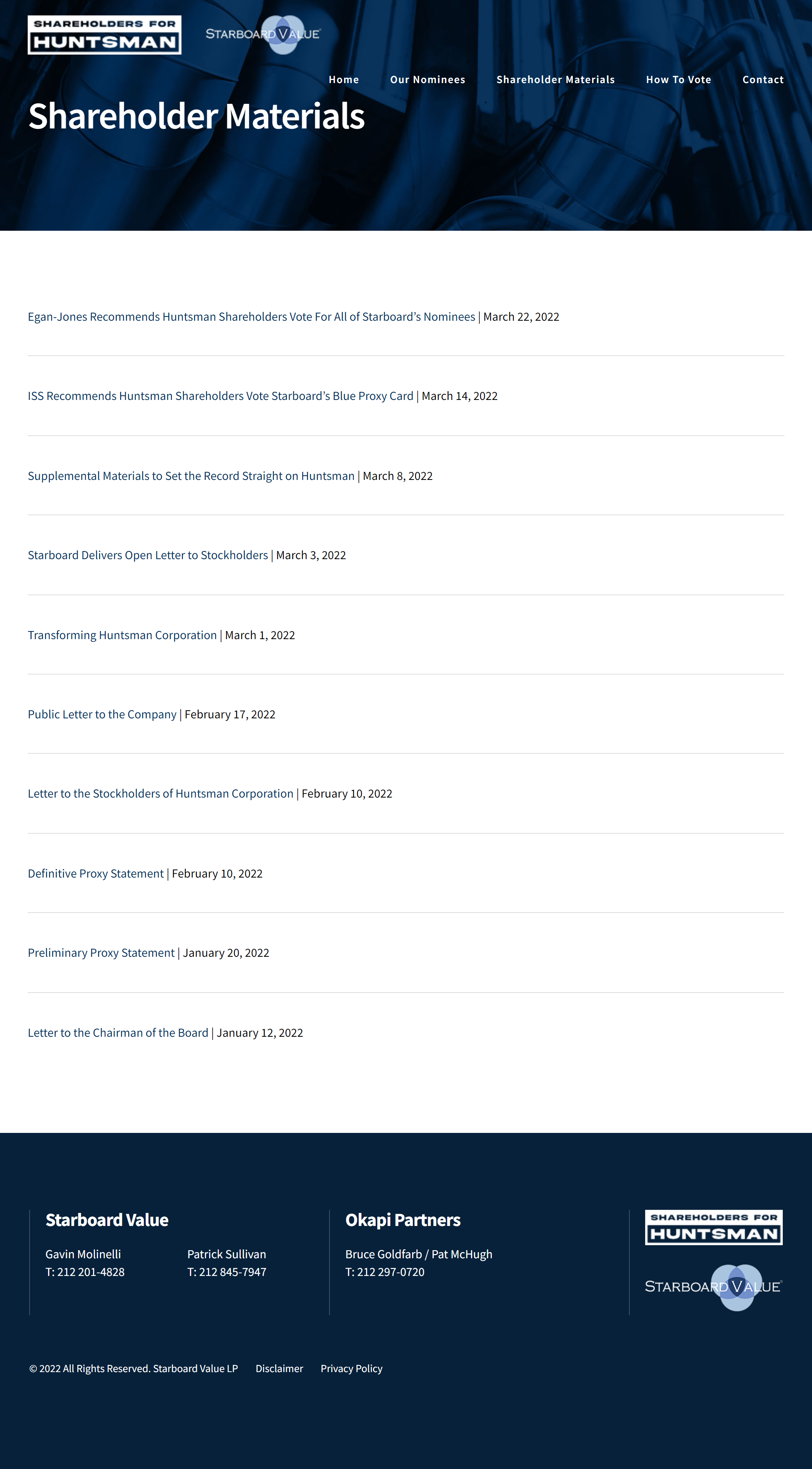 Item 2: Also on March 22, 2022, Starboard uploaded the following materials to www.shareholdersforhuntsman.com: