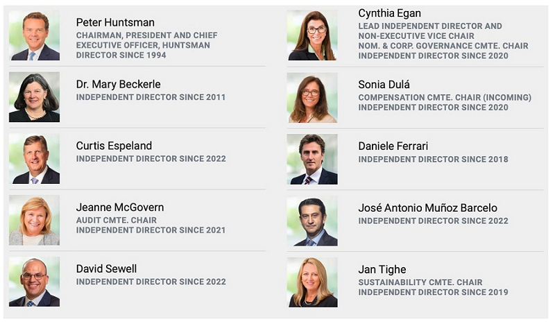 To be clear, Huntsman has already completed the substantial refreshment of your Board that began in late 2017, appointing eight new independent directors since Peter Huntsman became Chairman in January 2018. These directors were each selected based on their unique backgrounds and expertise needed to effectively oversee our company. Today, your refreshed Board brings the right combination of experience, knowledge and diversity that is critical to oversee our transformed portfolio, differentiated business strategies and long-term success.